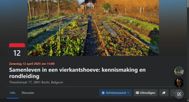 Dit is jouw kans om bij te dragen aan tuin- en boerderijonderhoud, nieuwe vrienden te maken en de kracht van een community te ervaren. Plus: sauna-avonden, spelletjes en heerlijke maaltijden!