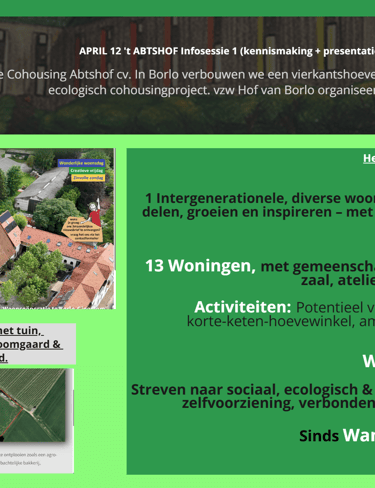 Presentatie over de woongemeenschap. Rondleiding op de site.