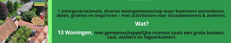 13 Woningen, met gemeenschappelijke ruimtes zoals een grote keuken,