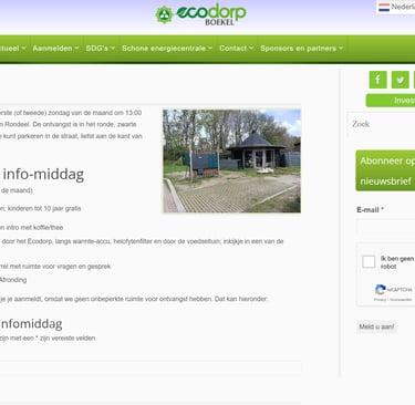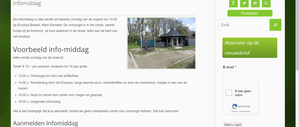 U kunt zich aanmelden via de officiële website van Ecodorp Boekel. Hier vindt u een speciale sectie gewijd aan de infomiddag, waar u eenvoudig uw gegevens kunt invoeren en uw deelname kunt bevestigen.