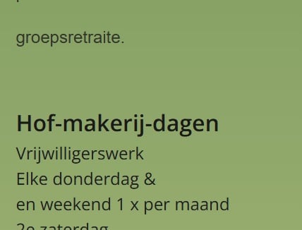 Er zijn talloze redenen om deel te nemen aan onze wekelijkse activiteiten. Ten eerste, het brengt mensen samen. Je zult snel ontdekken dat er een sterke community ontstaat rondom deze hofmakerij. Daarnaast bieden we een lekkere koffie, thee en een heerlijke lunch aan. Dit maakt de ervaring niet alleen productief, maar ook gezellig. Wie wil er nu niet werken in een mooie omgeving terwijl je geniet van een goed gesprek?