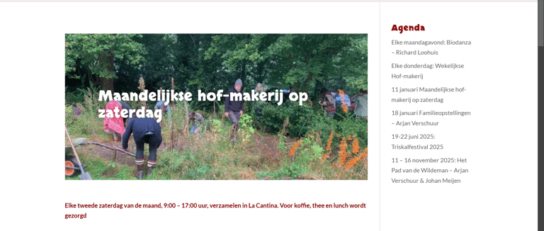 In de periode van 16 november tot 21 december hebben we iets heel bijzonders in petto. Iedere donderdag om 15:00 uur organiseren we een presentatie over het ‘waarom’ en ‘hoe’ van onze crowd-fun-actie: 'We maken de aarde weer het hof!' Hierin delen we onze motivatie voor de hofmakerij, en hoe we samen een positieve impact kunnen hebben op de aarde. Dit is een perfecte gelegenheid om meer te leren over duurzaamheid en betrokkenheid bij de natuur.