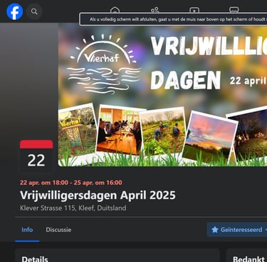 Het vrijwilligersweekend vindt plaats in Vlierhof, een prachtige gemeenschap waar je samenwerkt in een inspirerende omgeving.