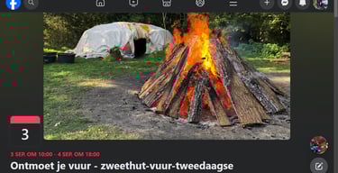 Op 3/4 september organiseren we voor de derde keer een speciale zweethut-tweedaagse waarin het vuur een prominente plaats inneemt. Het vuur van het hut en je eigen vuur!